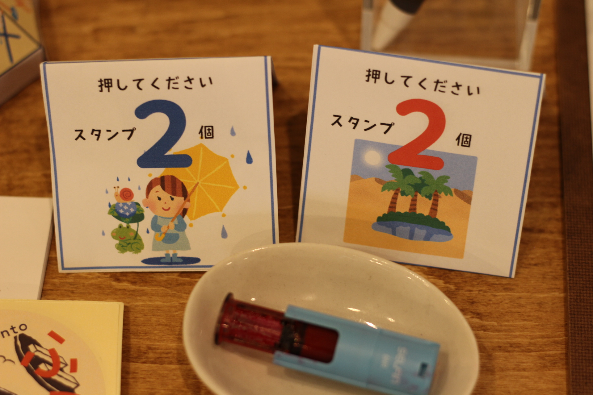 スタンプはご来店1回で1個押せます。なんと特別に「雨の日は2個」「酷暑も2個」押せます(天気予報で最高気温33度以上の日)。