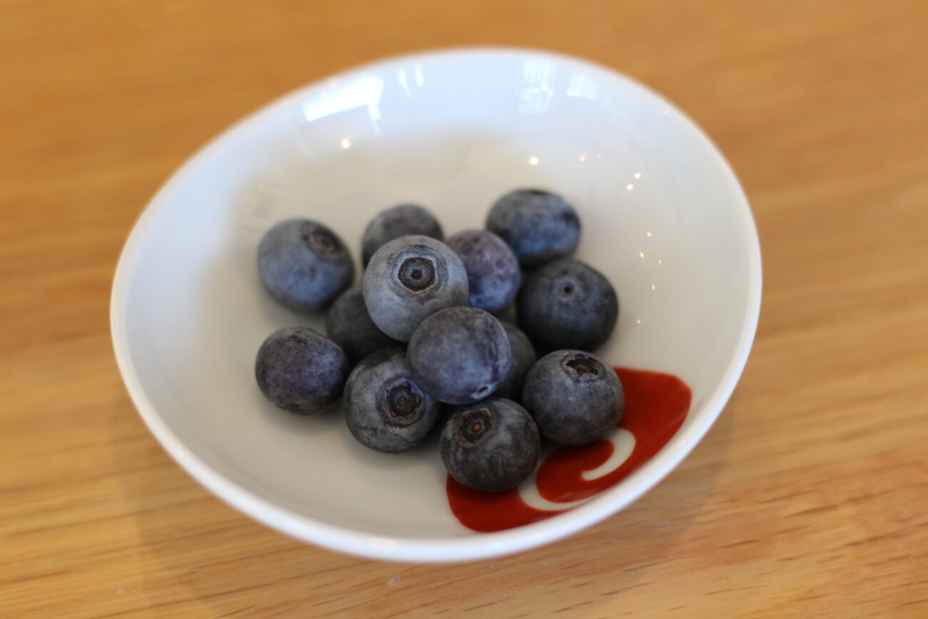ブルーベリーはなんと地元小平産。しかもブルーベリー栽培発祥の地として名高い「島村農園」さんからお譲りいただいております。